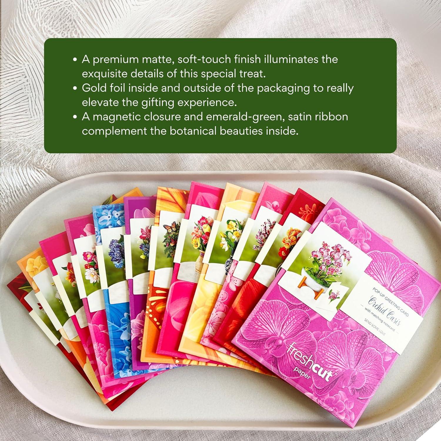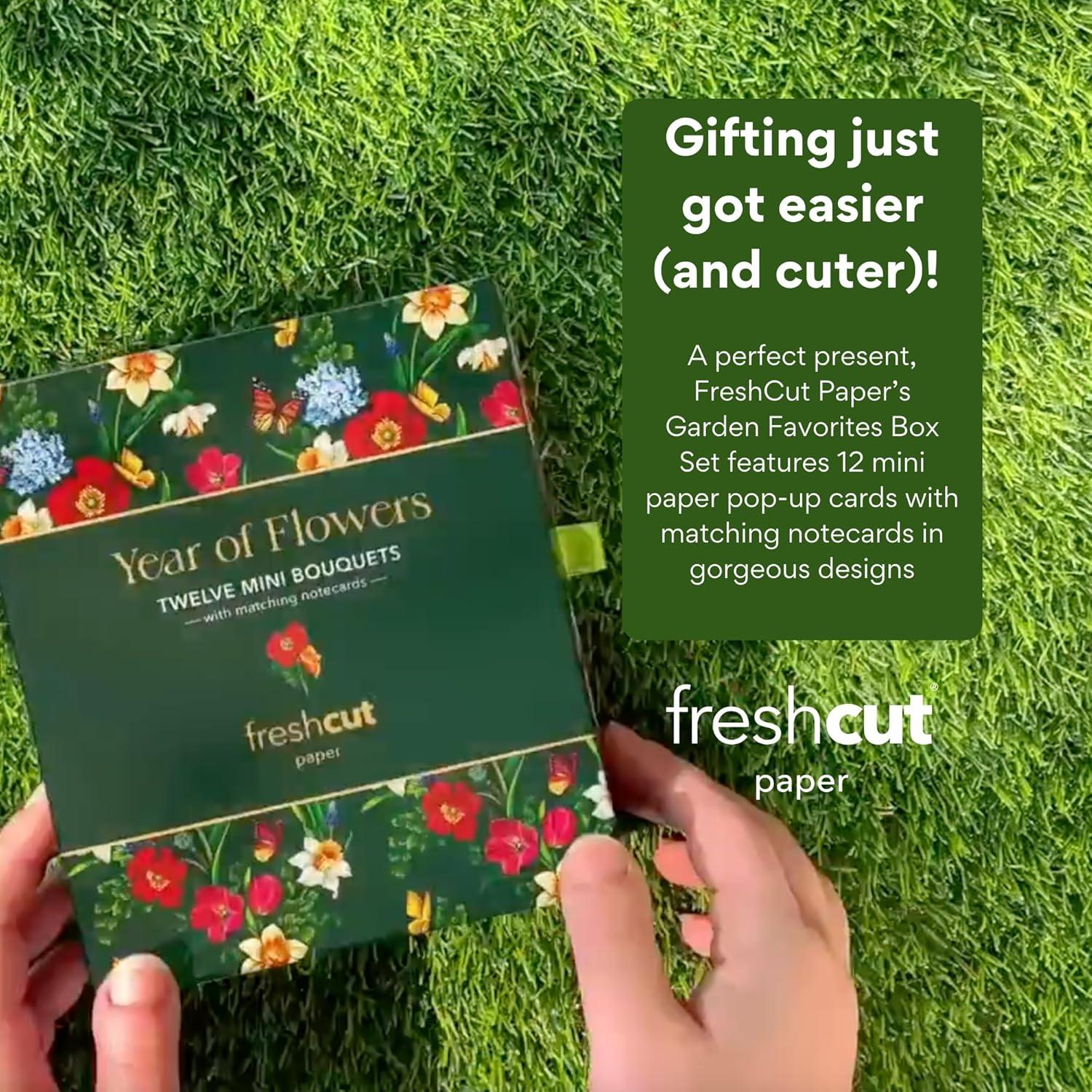 Freshcut Paper Pop Up Cards, Garden Favorites, 6 inch Mini Sized Paper Flower Bouquet 3D Popup Greeting Cards, Birthday Card, Thank You Card, Blank Notecards & Envelopes, Pack of 5(12pk – Year of Flowers)