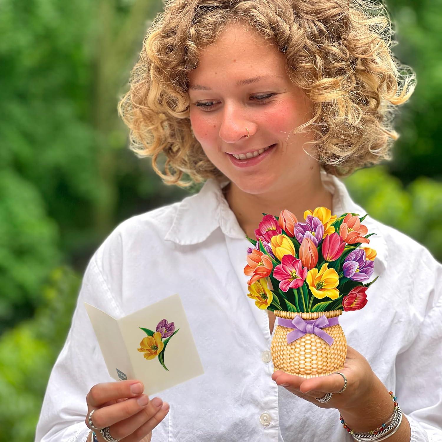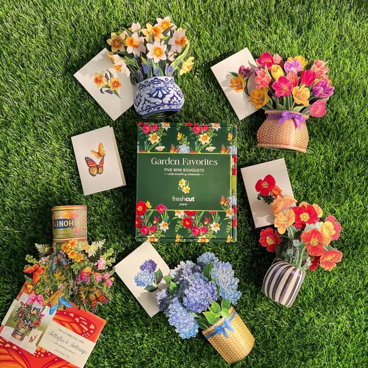 Freshcut Paper Pop Up Cards, Garden Favorites, 6 inch Mini Sized Paper Flower Bouquet 3D Popup Greeting Cards, Birthday Card, Thank You Card, Blank Notecards & Envelopes, Pack of 5(5pk – Garden Favorites)