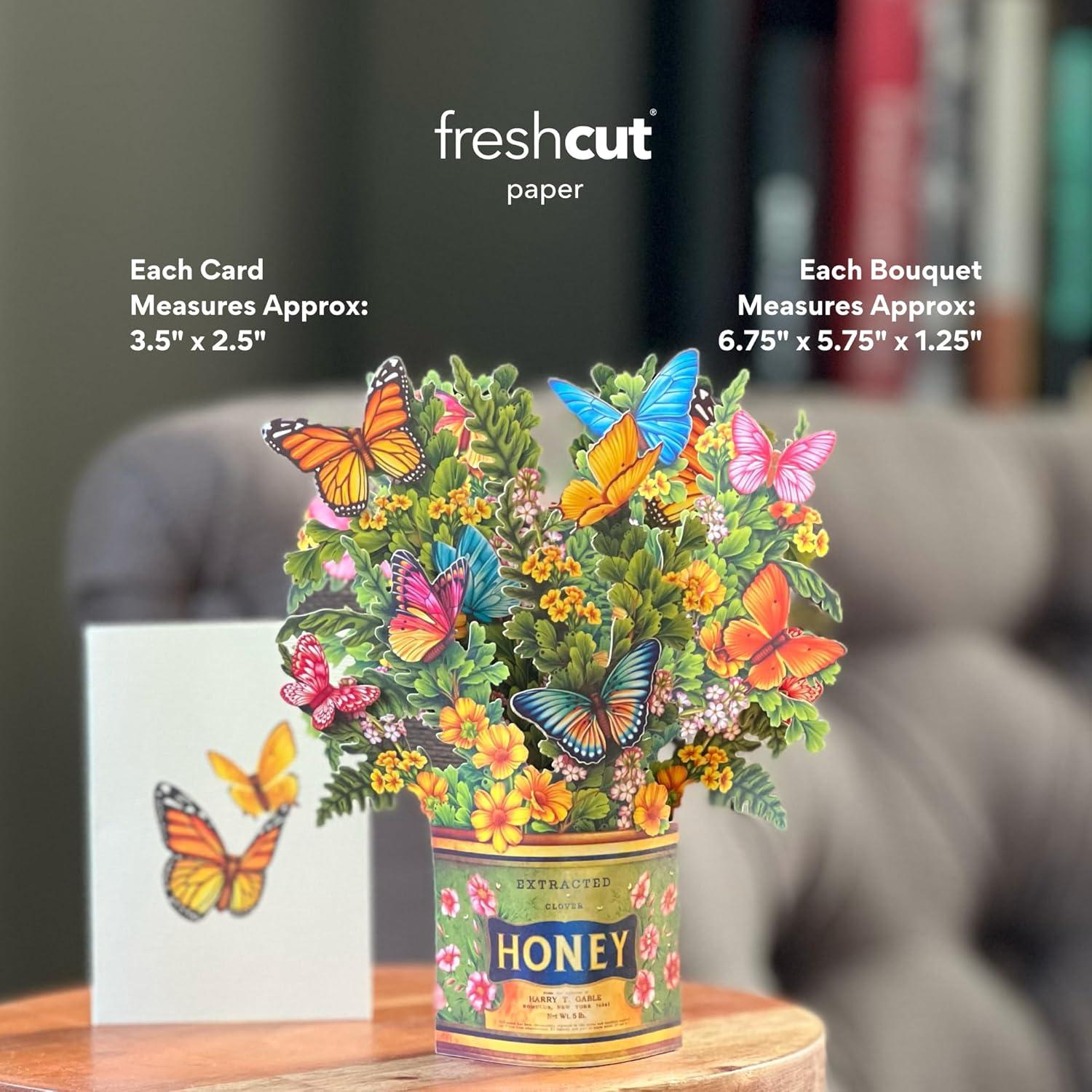Freshcut Paper Pop Up Cards, Mini Buttercups & Butterflies, 6 Inch Mini Sized Forever Flower Bouquet 3D Popup Greeting Cards, Birthday Card, Thank You Card, Blank Notecard & Envelope