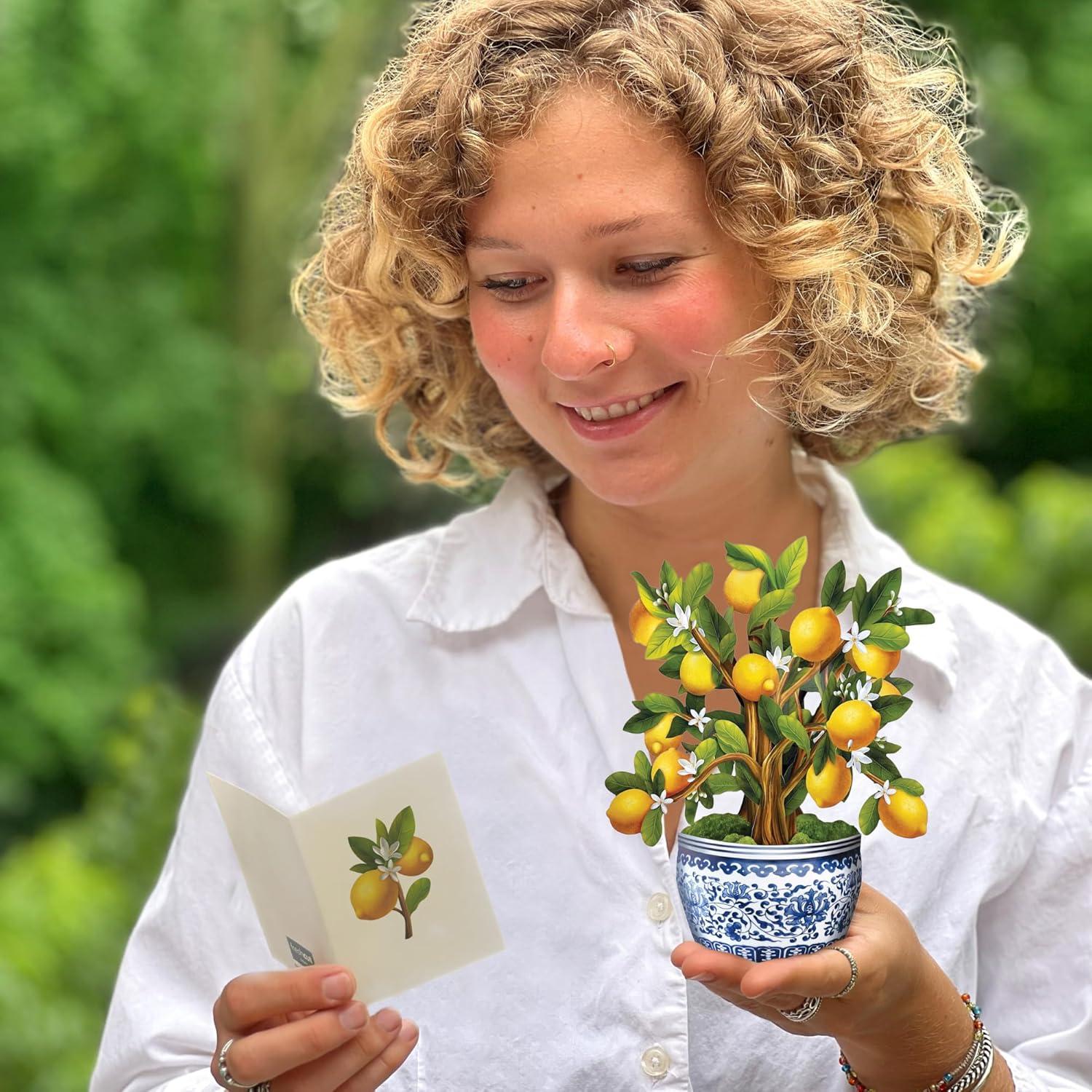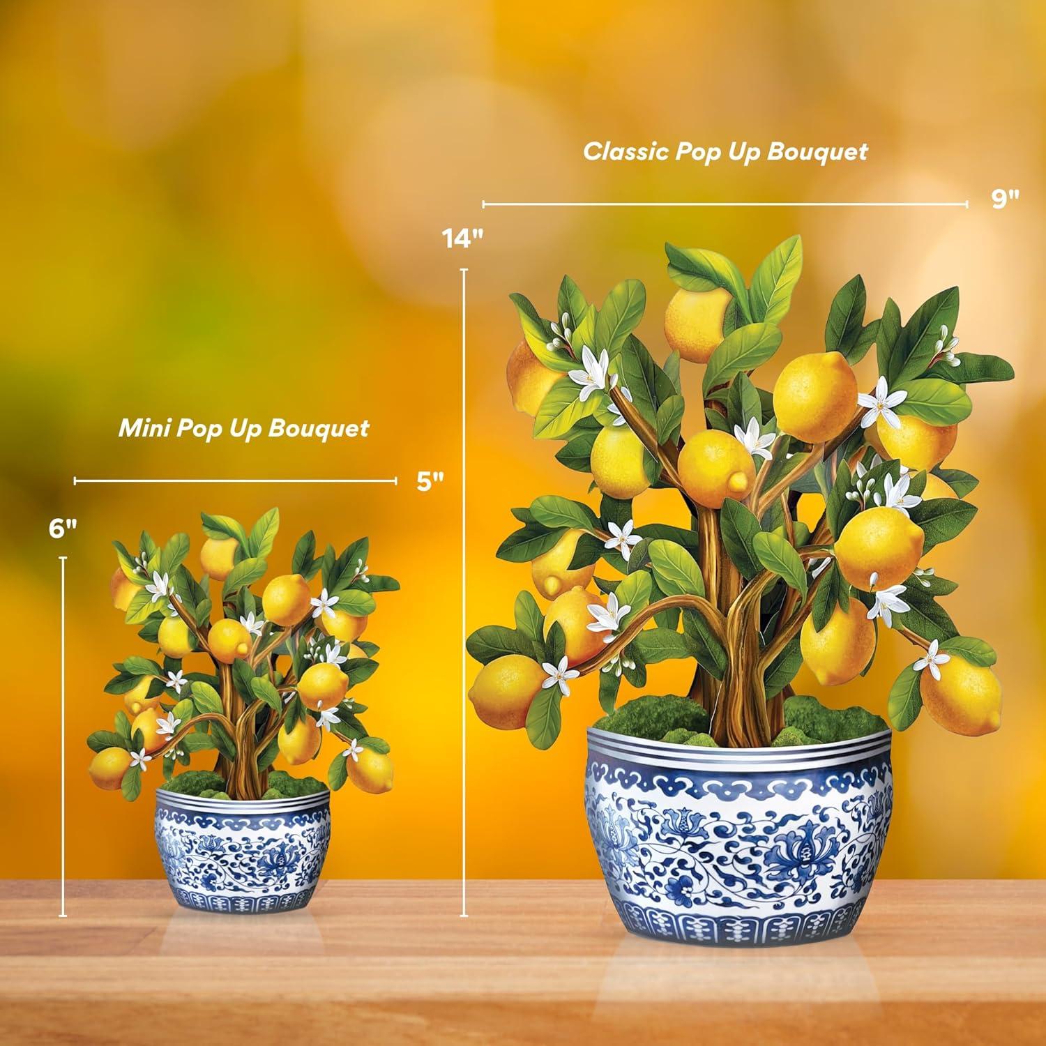 Freshcut Paper Pop Up Cards, Mini Lemon Blossom Tree, 6 Inch Mini Sized Paper House Plants 3D Popup Greeting Card, Thank You Cards, Get Well Gifts, Blank Notecard & Envelope(Lemon Blossom Tree)