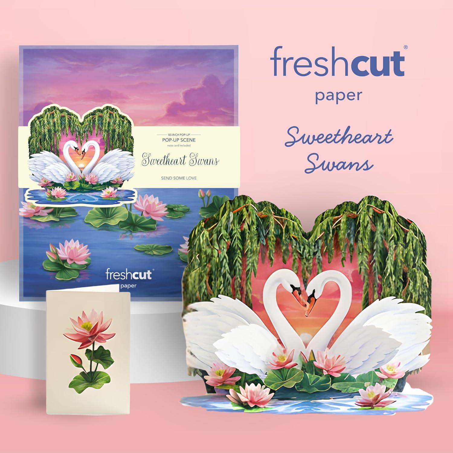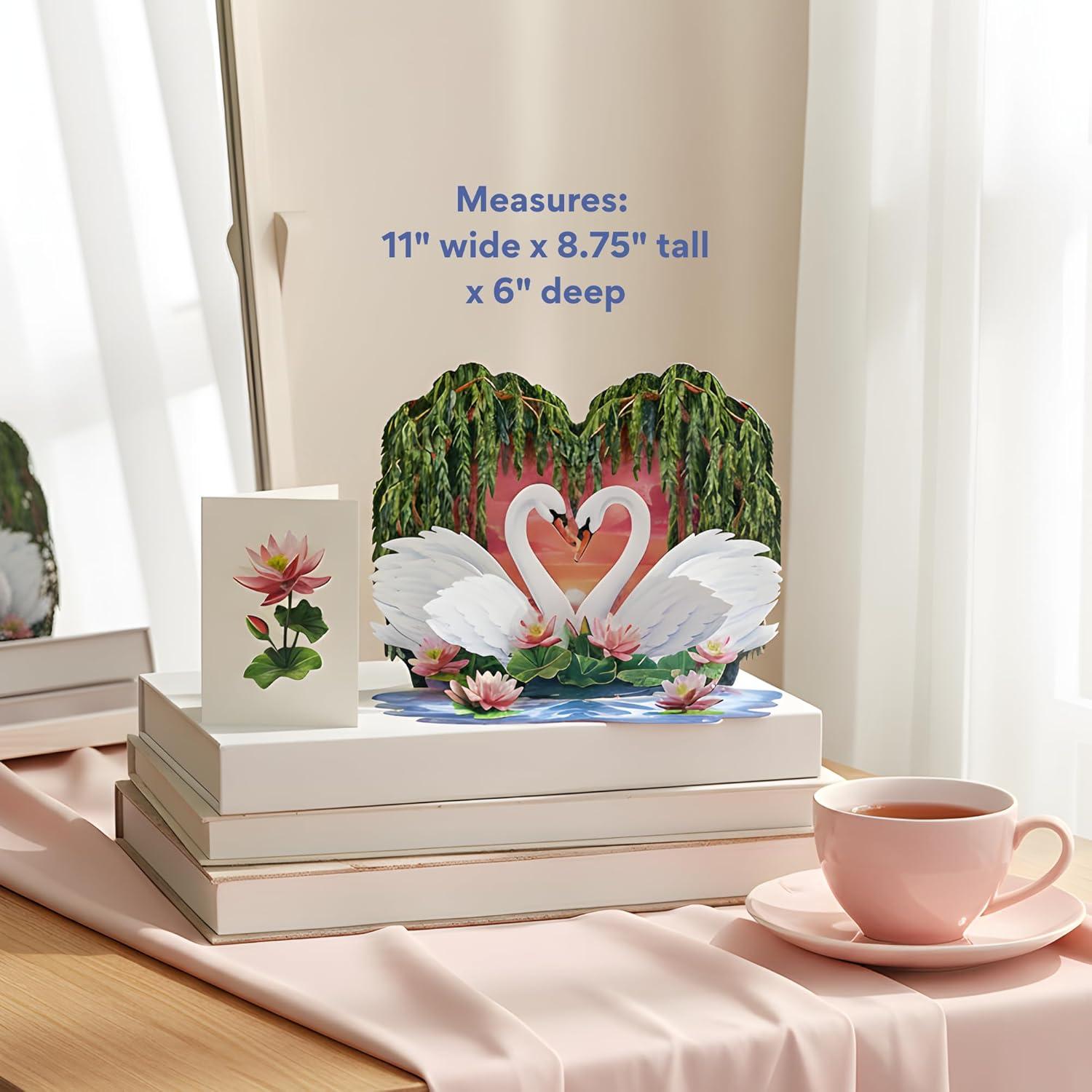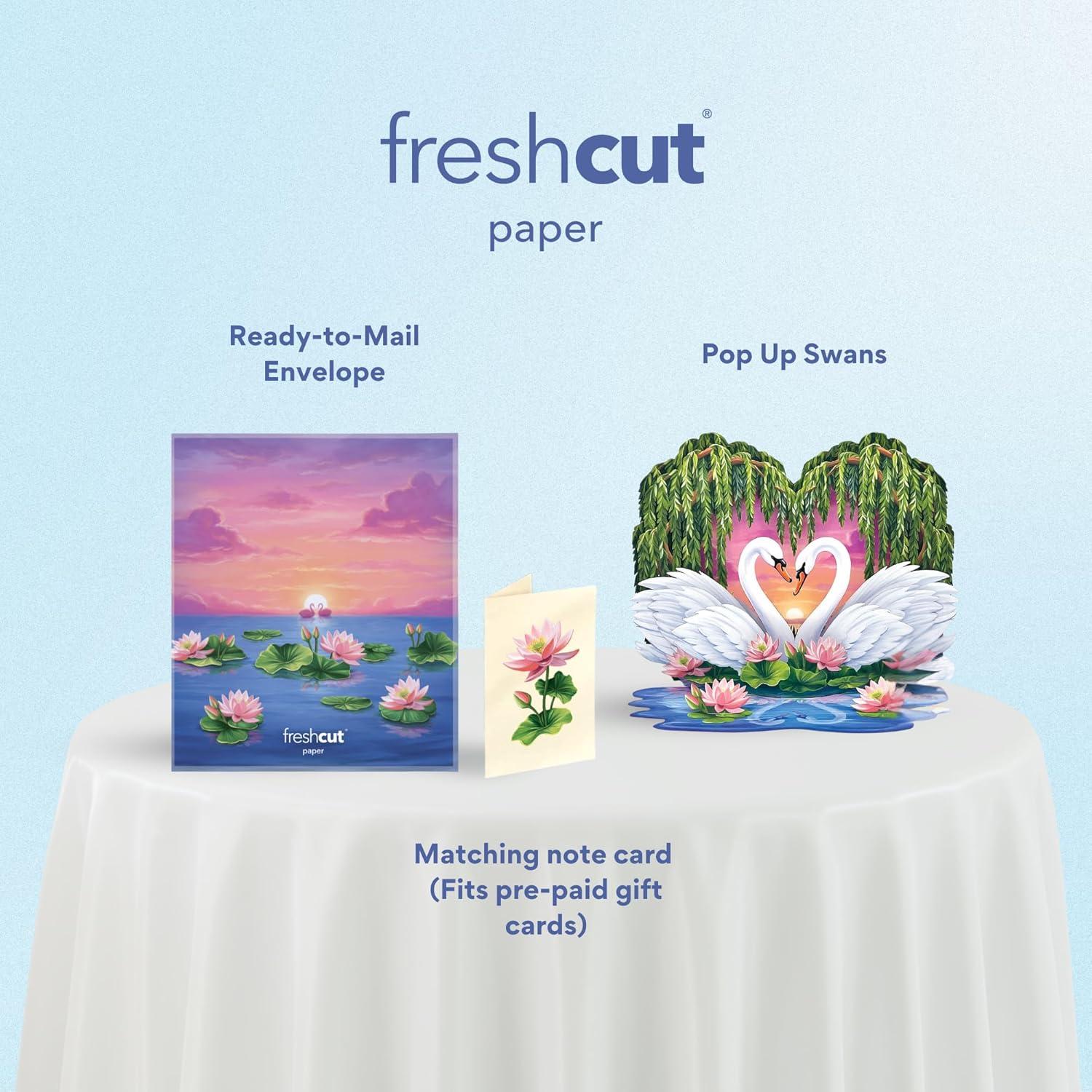 Freshcut Paper Sweetheart Swans Pop Up Cards, 12 Inch Life Sized 3D Popup Greeting Card, Valentine’s Day Card, Birthday Cards, Blank Notecard & Envelope