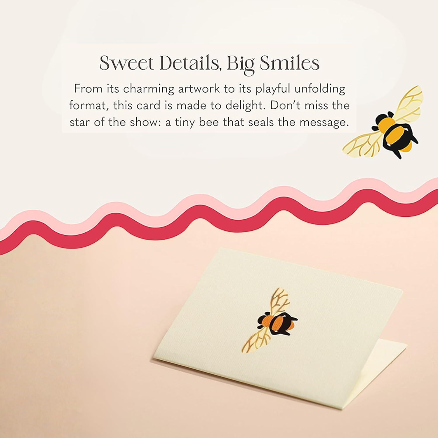 HIGH QUALITY ART features a message of love with pink and red flowers and a bumblebee. Durable and sturdy, these pop up cards are sure to thrill as a romantic gift