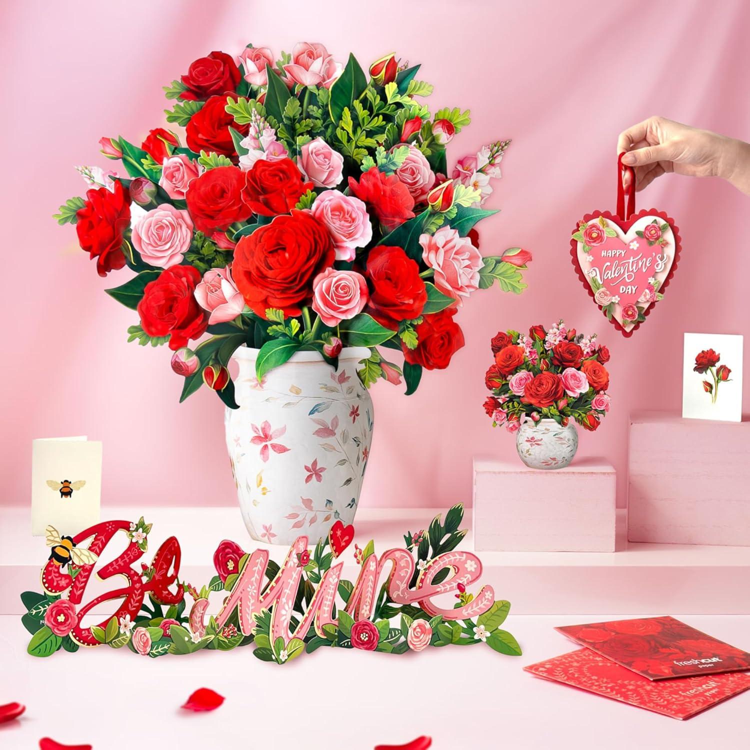 Freshcut Paper Valentine’s Day Wishes Pop Up Cards, Be Mine 18 Inch 3D Popup Greeting Card, Valentine’s Day Card, Girlfriend Cards, Engagement Gifts, Blank Notecard & Envelope